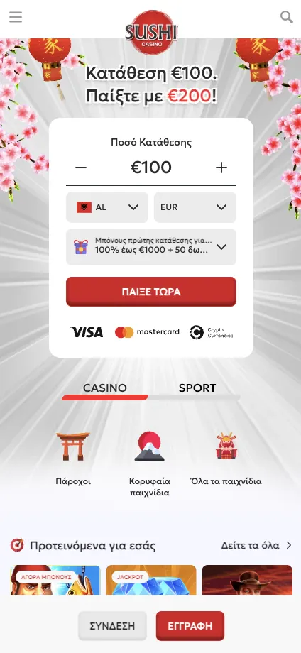 Για πληρωμές στην Ελλάδα, υποστηρίζουμε καταθέσεις και αναλήψεις σε EUR με σαφή ελάχιστα, καθώς και άμεσες επιλογές όπου είναι διαθέσιμες. Μετά την εγγραφή Sushi, μπορείτε να καταθέσετε από €20 με κάρτες και δημοφιλή e-wallets, και μπορείτε να ζητήσετε αναλήψεις στο ταμείο μόλις ολοκληρωθούν οι έλεγχοι του λογαριασμού σας. Αν έχετε απορίες για την καλύτερη μέθοδο ως προς την ταχύτητα, το live chat μας μπορεί να εξηγήσει τι είναι άμεσο και τι χρειάζεται λίγες εργάσιμες ημέρες.